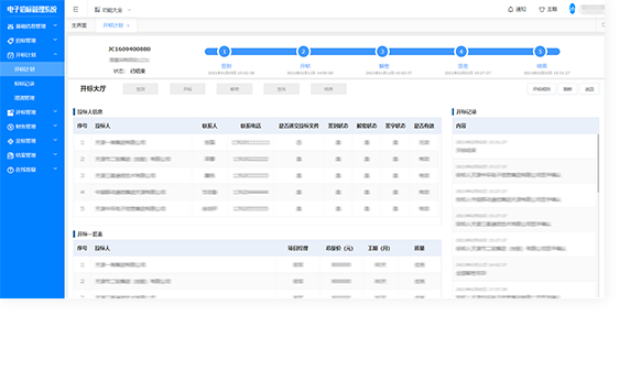 包含招標(biāo)、投標(biāo)、開(kāi)標(biāo)、評(píng)標(biāo)、定標(biāo)管理等,實(shí)現(xiàn)在線(xiàn)全流程管理操作