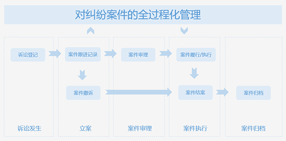 實(shí)現(xiàn)了從糾紛發(fā)生、立案、案件審理、案件執(zhí)行、案件歸檔全過程化管理。
